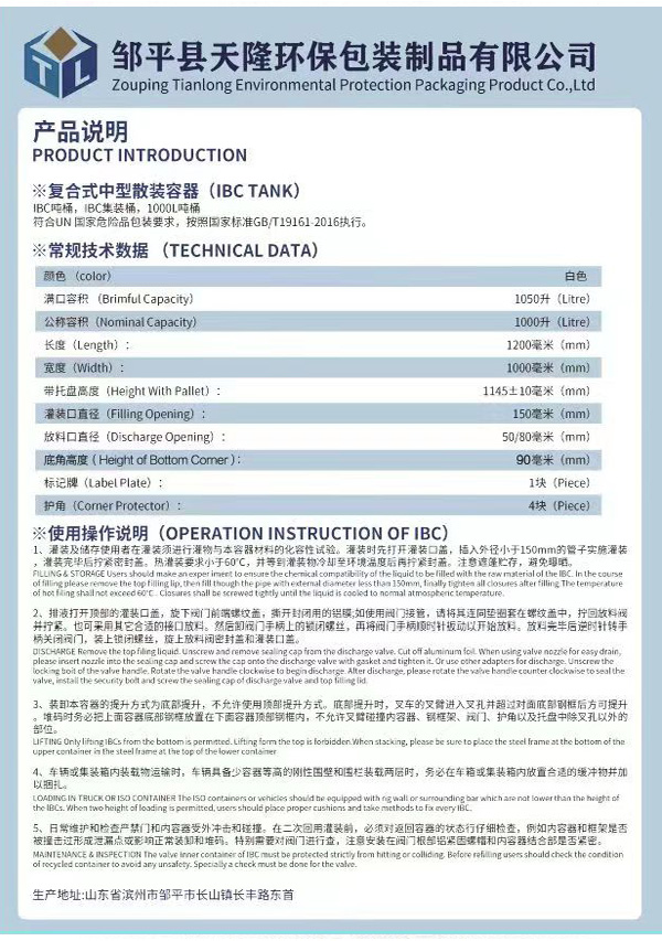 本公司始建于2007年,属于民营企业,固定资产3000万元,厂区内占地约130亩,建筑面积5148平方米,其中车间、仓库面积4660平方米。本公司拥有国内最先进水平的200L聚乙烯吹塑通生产设备:秦川机床3台,年生产能力40万只,年产值5500多万元;复合型中型散装容器生产设备:华玉塑机2台,年生产能力25万只。销往国内市场,出口到俄罗斯、东南亚、南非等。年产值1个亿。公司现采购原料聚乙烯1158P、齐鲁B445L 各200吨/年。